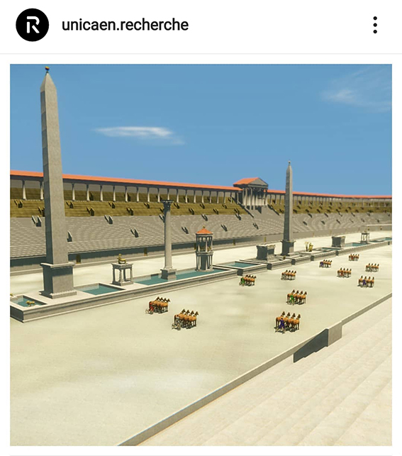 Légende : » Les plus grands spécialistes de la Rome antique, réunis à Caen les 11, 12 & 13 décembre 2019 ! Le centre interdisciplinaire de réalité virtuelle développe, depuis 1994, une maquette virtuelle de la Rome du IVe siècle après J.C. [Suite sur Insta @unicaen.recherche]