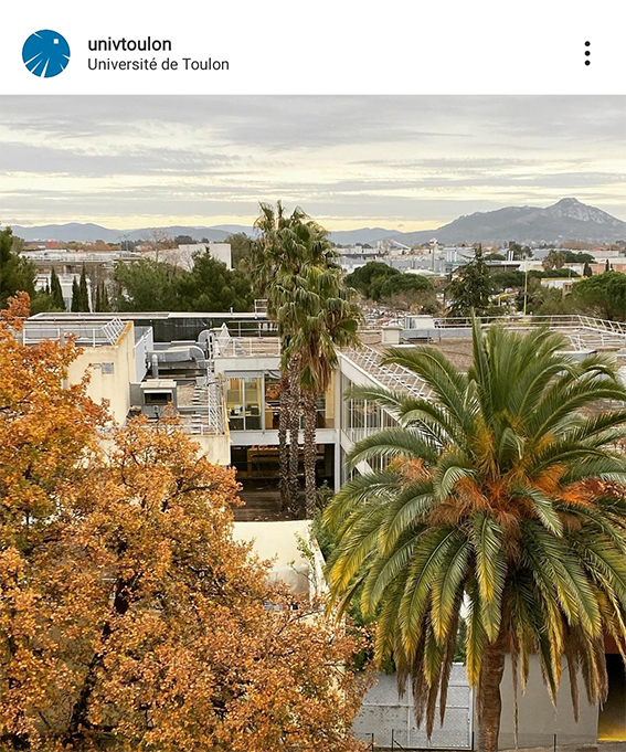 Université de Toulon : Le campus de La Garde et le patio de la BU, vu du nouveau bâtiment de la faculté des sciences. Crédit : Insta @univtoulon