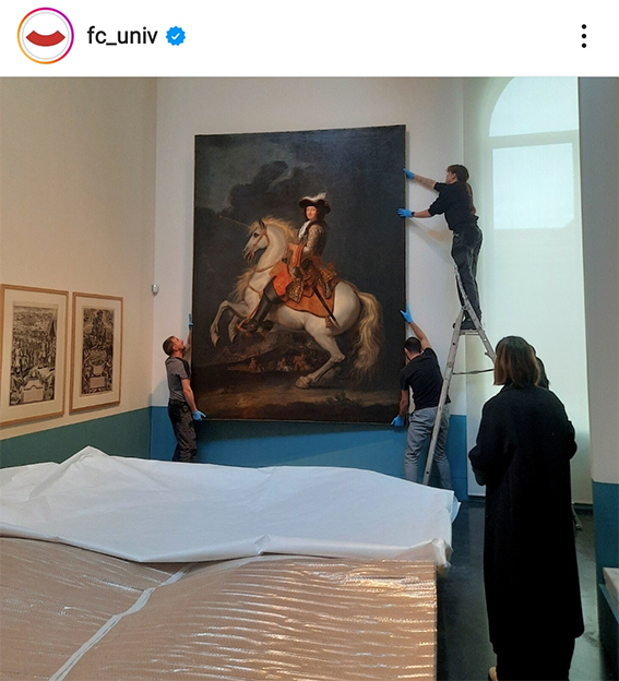 « La restauration du portrait équestre de Louis XIV est terminée ! Ce portrait du Roi-Soleil, qui veille depuis plus de deux siècles sur les activités du grand salon de l’hôtel de Courbouzon à Besançon, locaux de l’UFR SLHS depuis 1957, a été fragilisé par le temps.