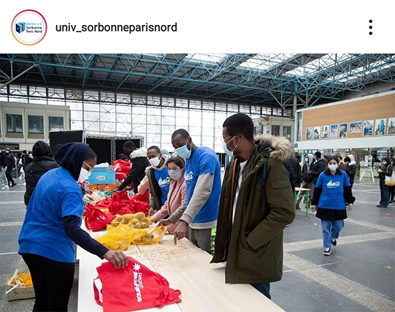 Distribution solidaire en Seine Saint-Denis. L’université Sorbonne Paris Nord, la Région Ile de France, les associations étudiantes distribuent des colis alimentaires sur le campus de Villetaneuse.