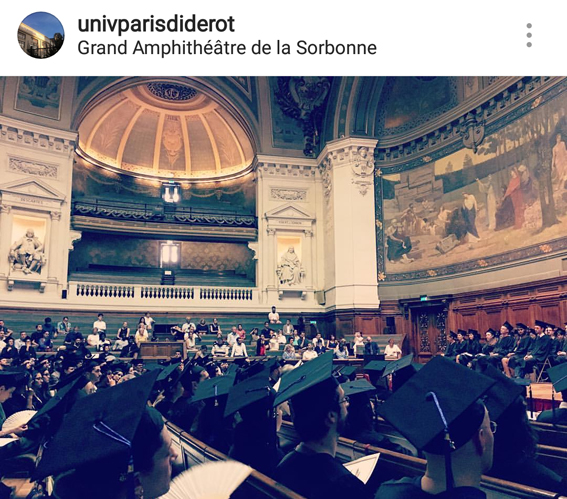 Cérémonie des Docteurs USPC 2016. Photo dans le grand amphithéâtre de la Sorbonne par l’Université Paris Diderot.