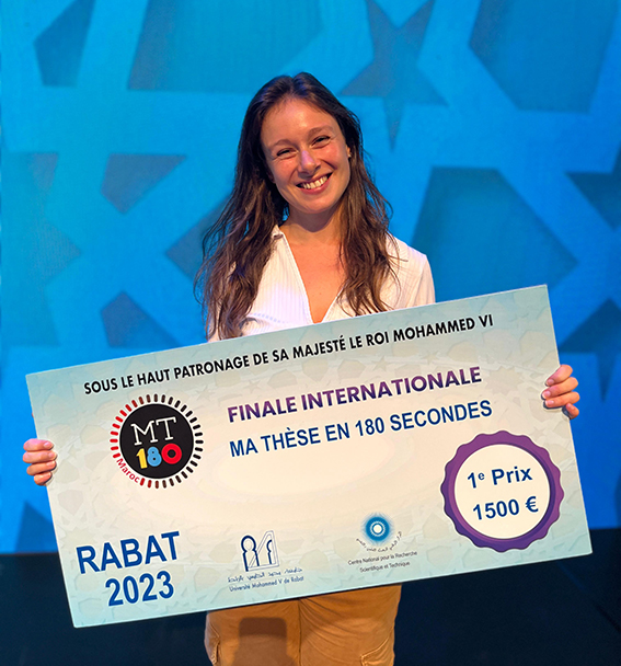 Camille Lakhlifi, doctorante à l’Université Paris Cité, grande gagnante de la finale internationale 2023 du concours Ma Thèse en 180 secondes.